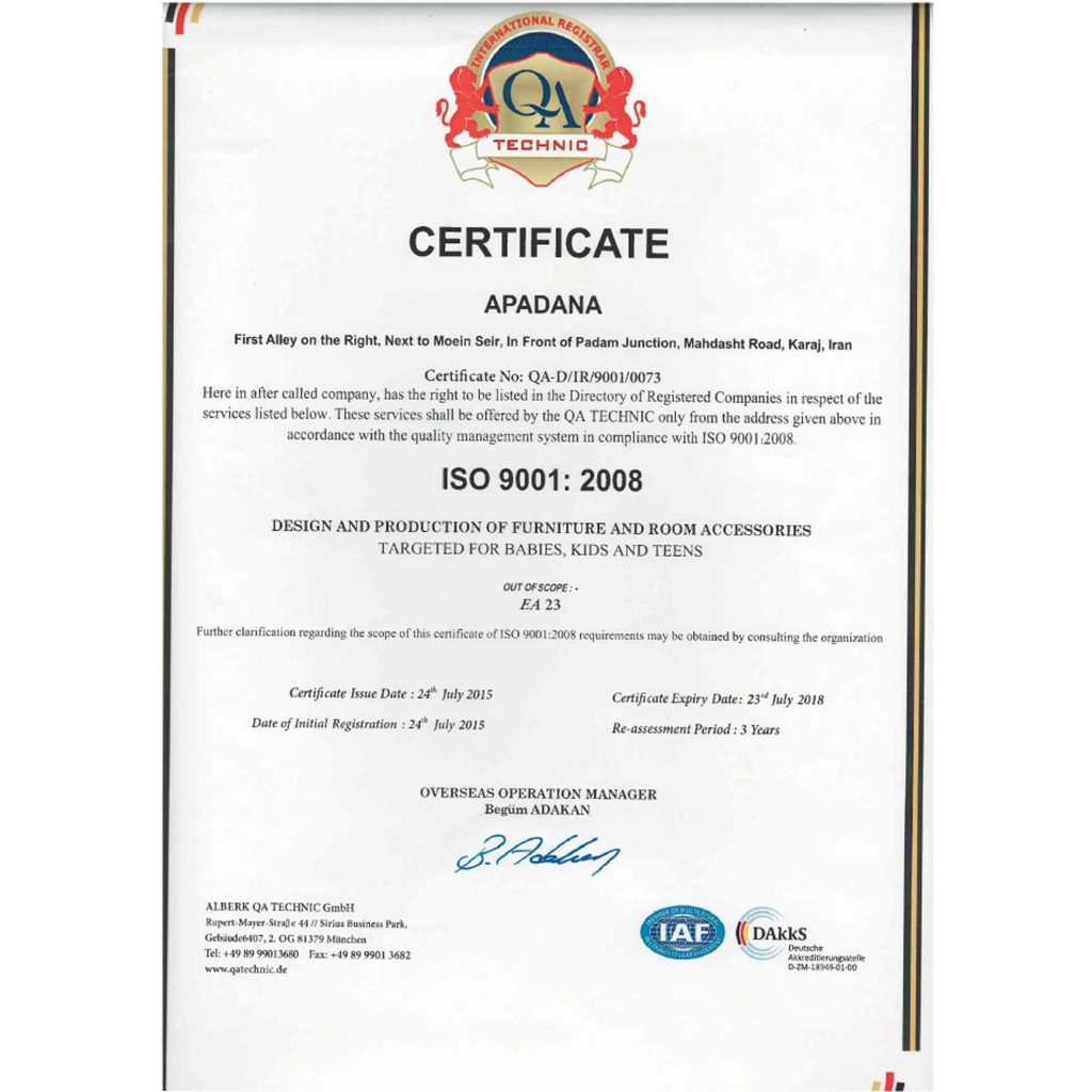 صنایع چوبی آپادانا فعالیت خود را از سال هفتاد و دو،در کارخانه ای با مساحت حدود 50000 متر مربع واقع در ماهدشت کرج با تولید مبلمان اداری و خانگی آغاز نمود. به مرور با جذب متخصصین مجرب و بهره گیری از فناوری و ماشین آلات روز اروپا سطح فعالیت خویش را با طراحی های مدرن روز دنیا بهینه نموده و همچنان در جهت بهبود محصولات گام بر می دارد.